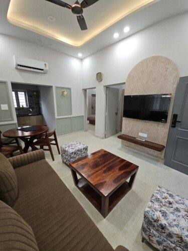 Escape to this elegant 2BHK home perfectly balancing comfort, convenience & nature. Located in the prime area of Dehradun, the property sits in a peaceful neighbourhood surrounded by greenery, with a serene jungle belt nearby and a stunning Mussoorie view from the terrace. The home offers warm aesthetics, modern amenities & easy accessibility to cafés & city hotspots. Whether you want to relax, explore or celebrate special moments it promises an unforgettable stay.