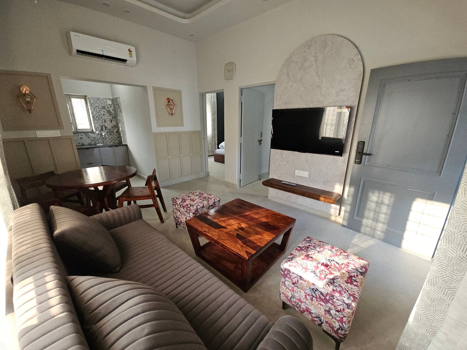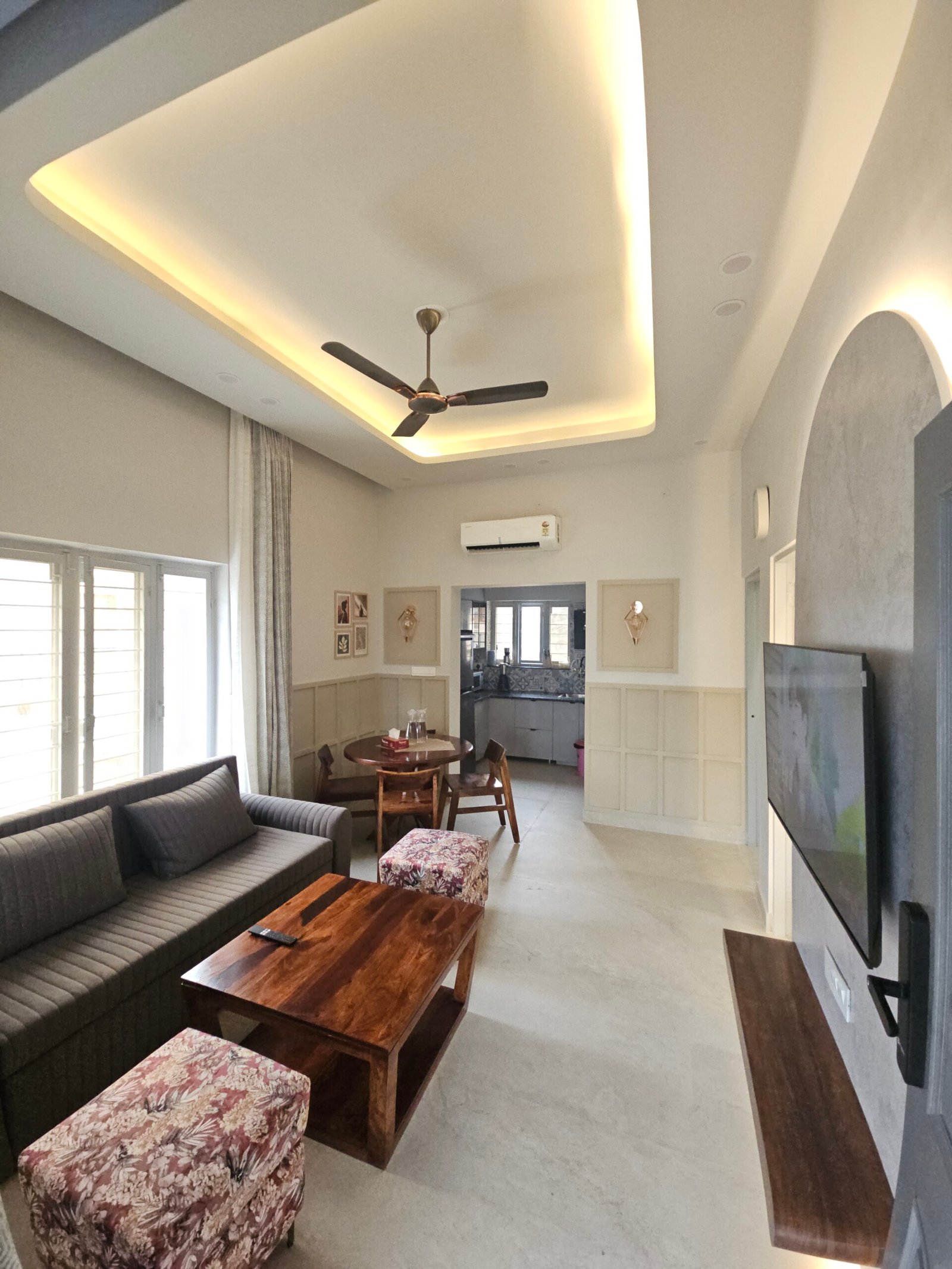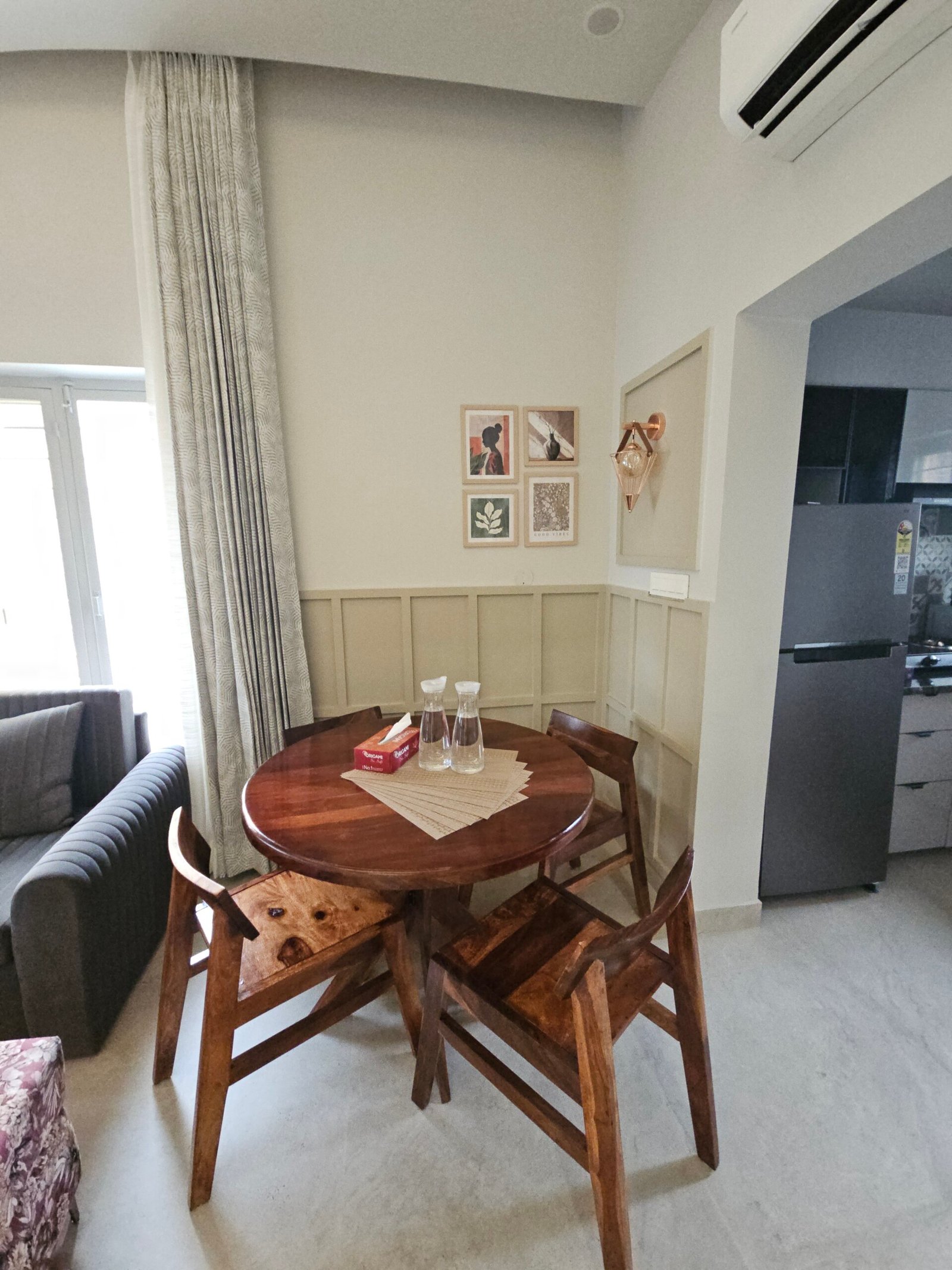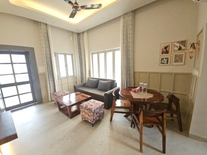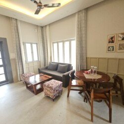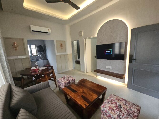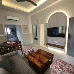 Escape to this elegant 2BHK home perfectly balancing comfort, convenience & nature. Located in the prime area of Dehradun, the property sits in a peaceful neighbourhood surrounded by greenery, with a serene jungle belt nearby and a stunning Mussoorie view from the terrace. The home offers warm aesthetics, modern amenities & easy accessibility to cafés & city hotspots. Whether you want to relax, explore or celebrate special moments it promises an unforgettable stay.